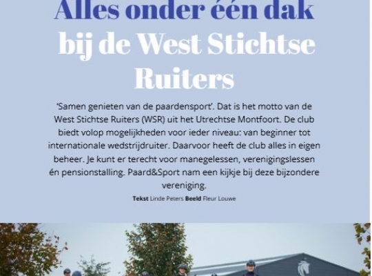 De KNHS kwam op bezoek bij de WSR voor een reportage in de Paard&Sport, het magazine van de KNHS.
