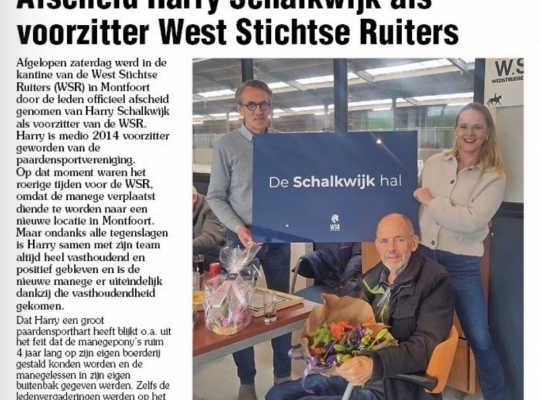Na ruim 10 jaar hebben we afscheid genomen van Harry Schalkwijk als voorzitter.
